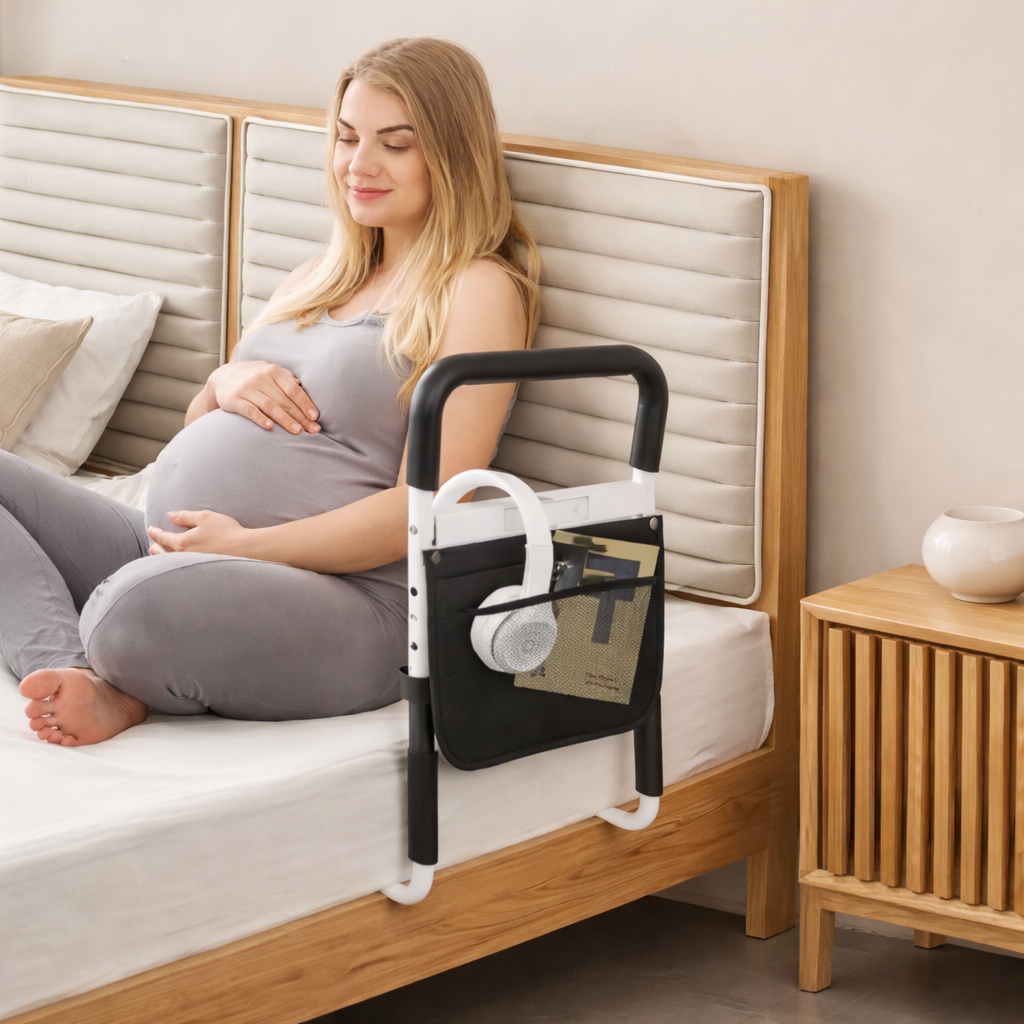 Découvrez comment CareRail™ aide les femmes enceintes à se lever du lit en toute sécurité, grâce à un appui stable, confortable et facile à utiliser, adapté aux besoins de la grossesse.